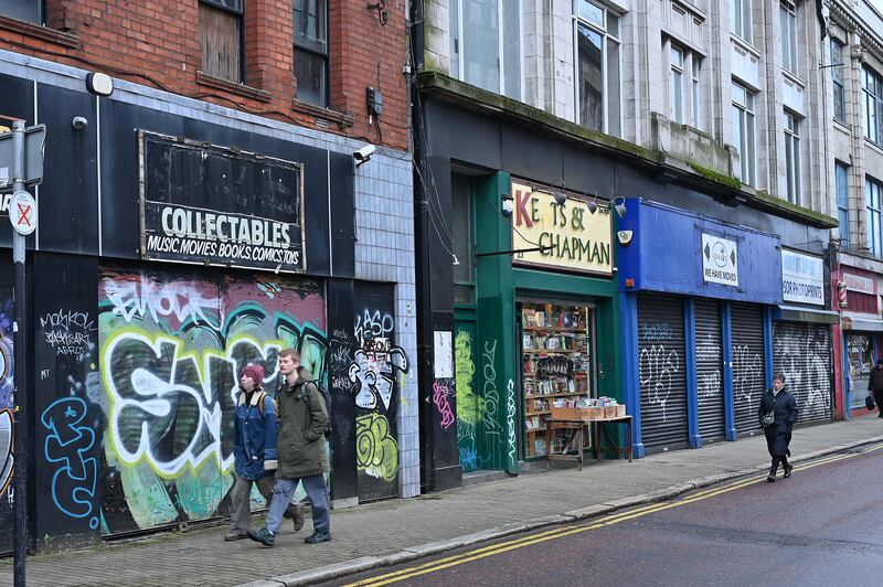North Street – once the commercial hub of Belfast where flour merchants traded alongside saddlers, clock makers, leather merchants, tea stores and wig makers in its 1850s heyday – is filled with derelict graffitied buildings.