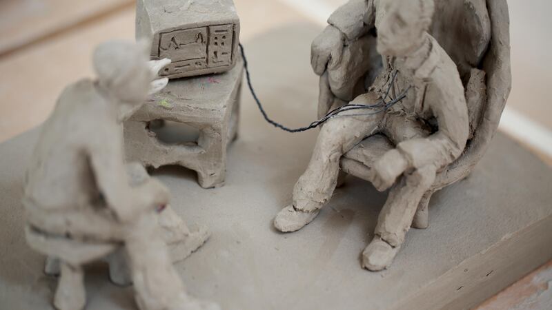 Fischer and el Sani are a pair of German artists, whose work is exemplary for nudging you to think about such things. Their second piece at The MART is Identity's Rule of Three (2016), an animated film that attempts to get to grips with the foundations of identity, whether in the individual, a group or society at large. It is divided into three phases, and I admit I got a little lost in the middle section where the narrative moved from a clever claymation sequence showing how if you get people to act out the role of an extrovert or introvert, they're more likely to claim those characteristics later, on to a mini-drama in the life of an artist.