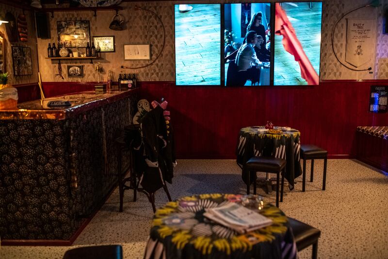 It’s all touche, or at least making particular and pointed observations, often with humour or lightness, at this síbín. The illegal drinking den (also shebeen) is the installation from Belfast-based Array Collective which won last December’s prestigious Turner Prize in Coventry. It’s currently being seen, or more like, enveloping people, for the first time in Ireland, at Galway Arts Centre.