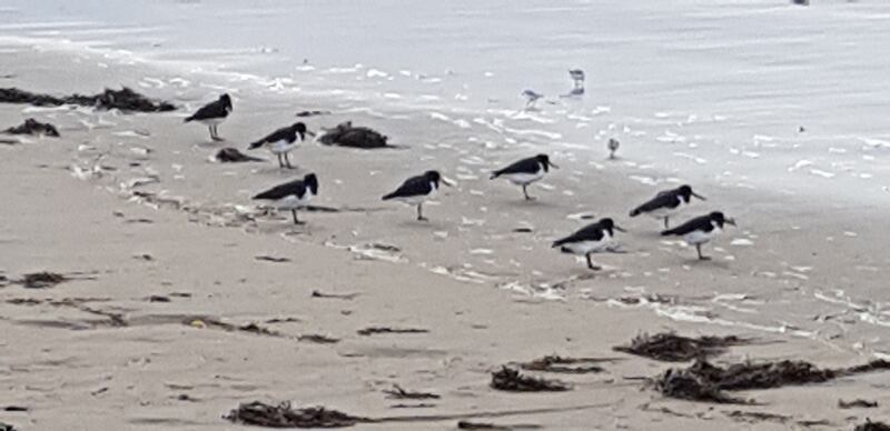 Oystercatchers on one leg on Ballyheigue strand, Co Kerry. Are they tucking one leg in to keep warm? Bryan MacMahon