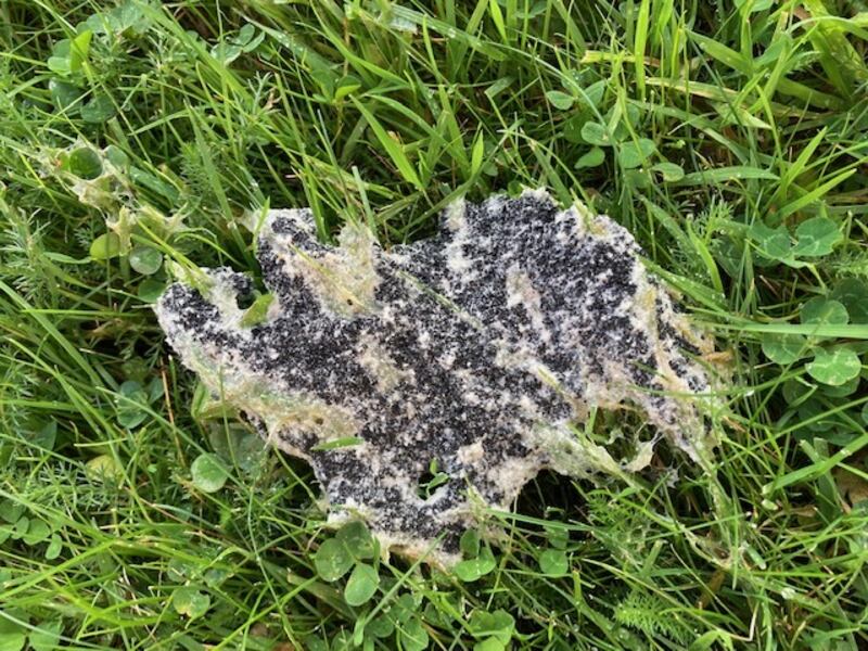 Some weeks ago these patches appeared on the grass in our back garden. They looked like an animal had vomited on the grass. After a few days, the frothy appearance died down and a dark green structure was left behind. Could it be some kind of fungus? Jacinta McLoughlin, Co Meath