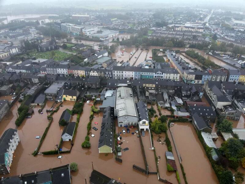 An aerial view taken on Wednesday October 18th of flooding in Midleton, Co Cork after Storm Babet. Photograph: Guileen Coast Guard