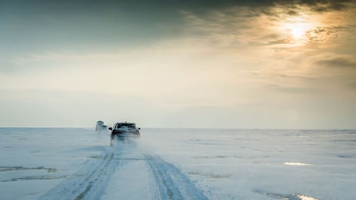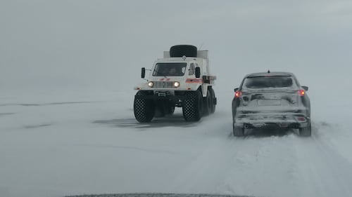 Crack is mighty crossing over the Siberian ice in a family crossover