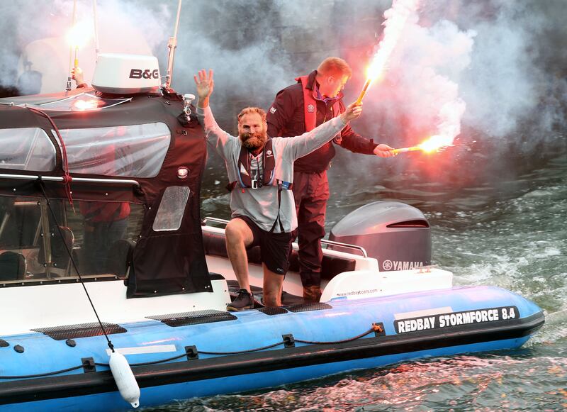 Instead, they showered him with gifts – bailing buckets, fizzy drinks, snacks, hot meals and reluctantly left him to the Atlantic. Browne was so concerned that his boat would become damaged in the wash of the tanker that he and Farrell scarcely had time to say good luck before he was alone. The friends would not see each other until Tuesday morning last, when Farrell was waiting in the big crowd on a squally morning on the docks in Galway.