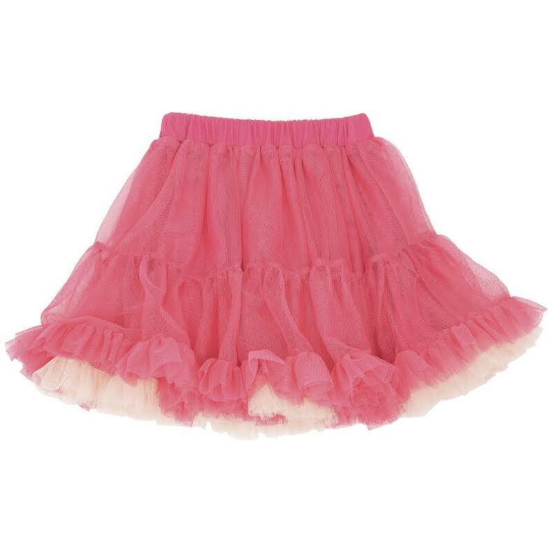 A Pink is a good colour. It is the colour of love, roses and a nice rare steak. I suggest just letting your daughter go to school wearing her puffy cloud of tulle (if the offending article is machine-washable; let's not go mad). Often, the only way for a person to power through an addiction is to hit rock-bottom, so let her get some wear out of her tutu. Your daughter will be delighted, but will eventually get tired of it. The worst that can happen is that a teacher tells her it's inappropriate, and you can put the offending article in the back of the wardrobe on school days, safe in the knowledge that you are no longer the bad guy.