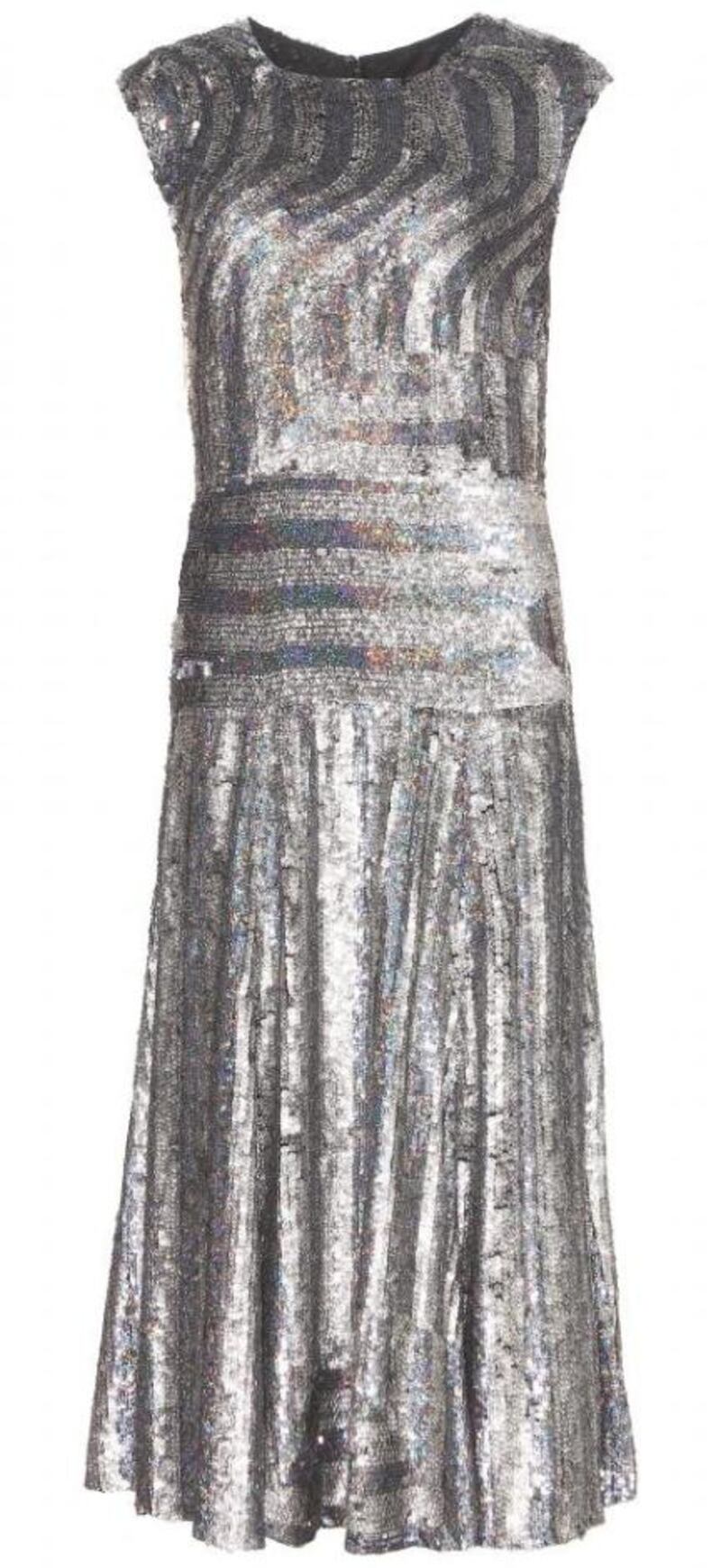 Metallic materials will draw attention without blowing your cover. This Dries van Noten dress is beautiful and will last beyond trends.