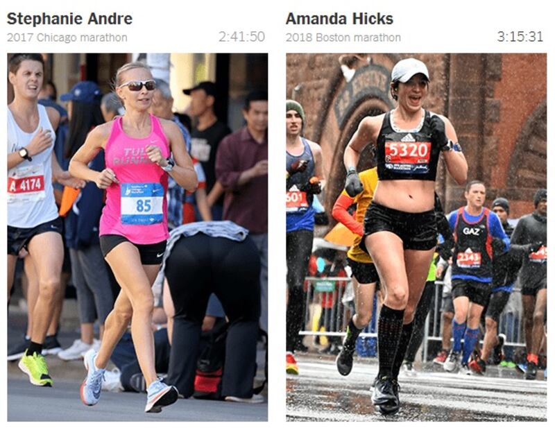 By objective standards, both women had excellent races. Andre placed 22nd among women in Chicago with a 2:41:50, fast enough to qualify for the 2020 US Olympic team trials, and Hicks finished in Boston with a 3:15:31, among the top 5 per cent of all female finishers that day. Andre set her personal record, but Hicks did not.