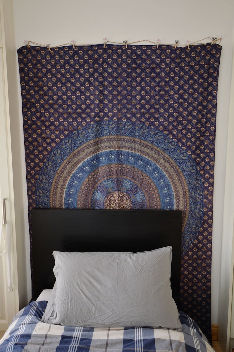 It is forever Morocco, where I first went when I was about four and will always remember the colours and smells. I take a bit of Morocco into my own interior with a tapestry from there with a mandala print, which travels around with me and lives in different places.