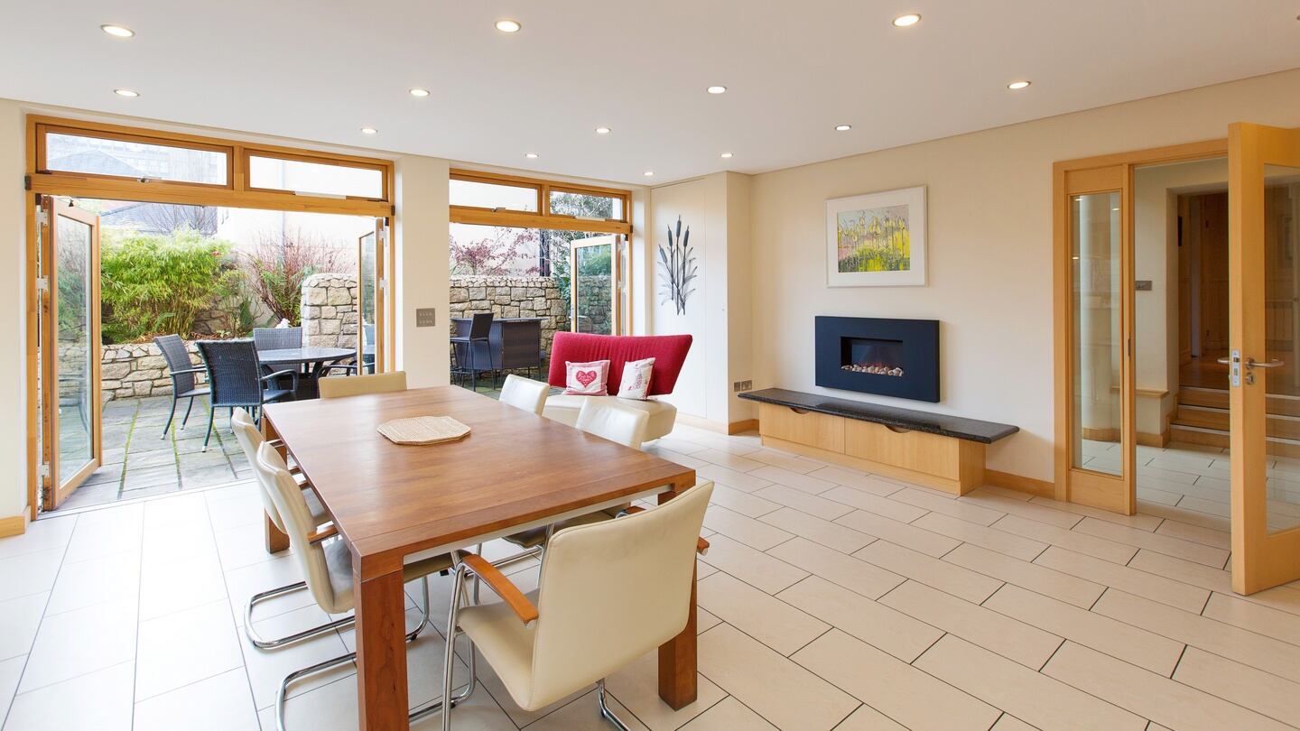 The second extension, completed in 2009, added a 125sq m three-storey unit to the rear, which links to the main house via a three-storey glass atrium. This houses the family kitchen at garden level, a very large games room on the first floor and a master bedroom which has a balcony overlooking the maintenance-free rear garden.