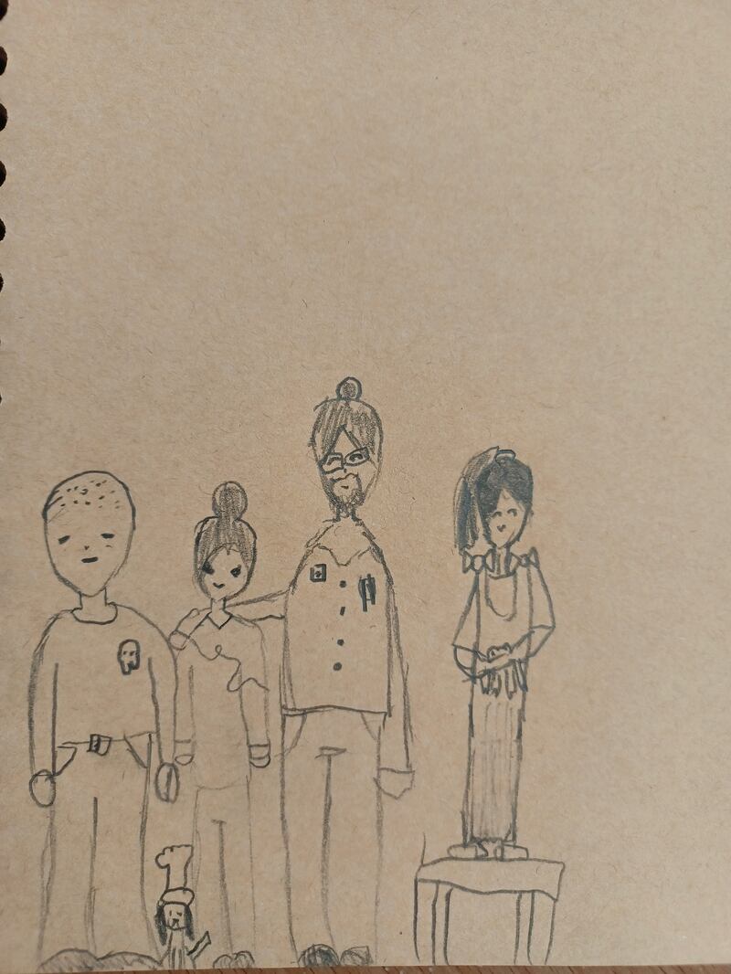 “She’s not a little angel,” says Rachel, firmly, as she draws pictures on a white board. She loves art and draws brilliant pictures as we talk.