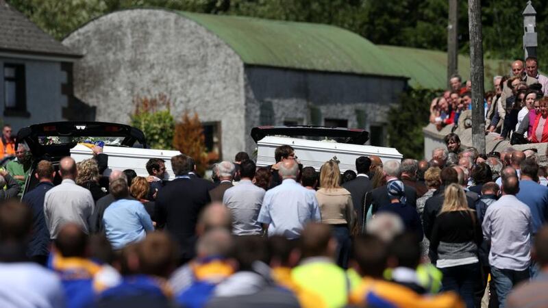 Symbols brought to the altar at the beginning of the Mass by the boys’ friends and cousins included a hurley and ball, a toy tractor, a cookbook and photograph of the boys.