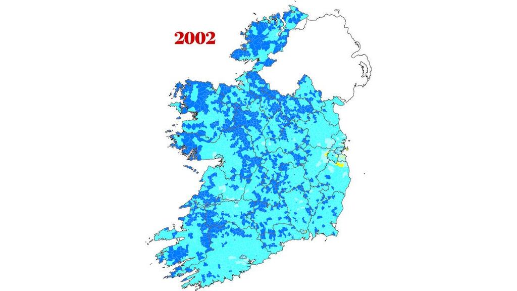 The lowest percentages are Leitrim and Longford (both 62 per cent), Donegal, Roscommon, Mayo, Monaghan, Cavan, Offaly, Tipperary and Kerry (all less than 65 per cent). Within these counties, many districts have usage figures of less than 50 per cent.