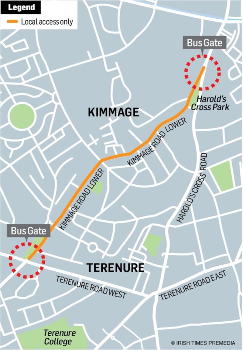 However, it would have to introduce two “bus gates” to Kimmage Road Lower, banning through-traffic for a 2km stretch, to ensure buses were not caught in jams.