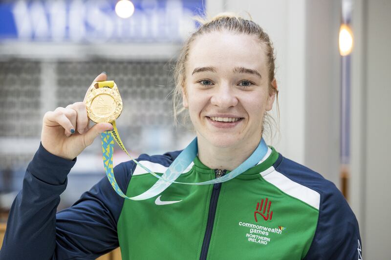 It carried her through the year. She hooked up with St Bronagh’s, a boxing club in Rostrevor, across the Border from her home in Dundalk, and qualified for the Commonwealth Games in Birmingham. Lightweight Gold. The world Championships were in Istanbul. Light welterweight gold. The European Championships in Montenegro two months ago closed the year. Light welterweight gold.