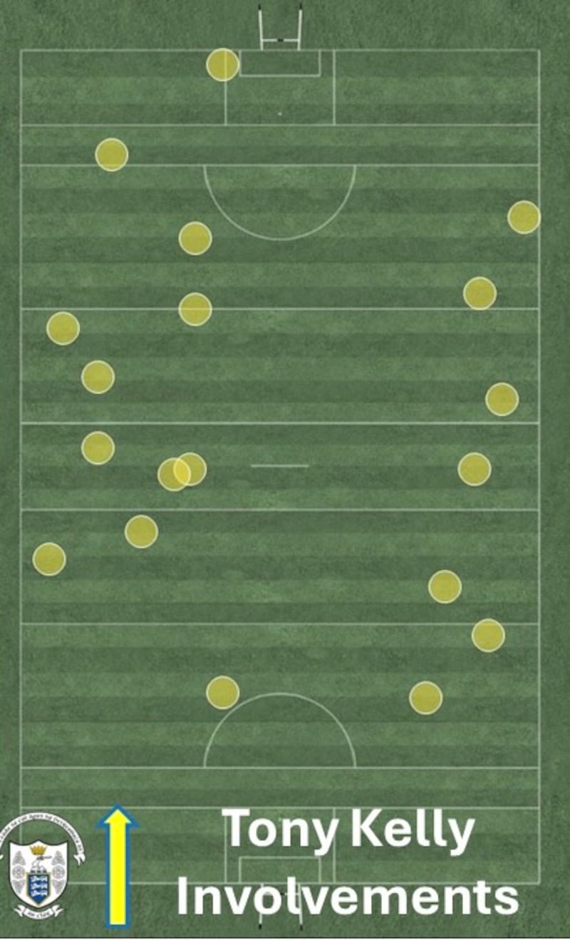 The possession map of Kelly shows how he operates on the edges, bringing magic from out on the wings when he comes inside with the ball.